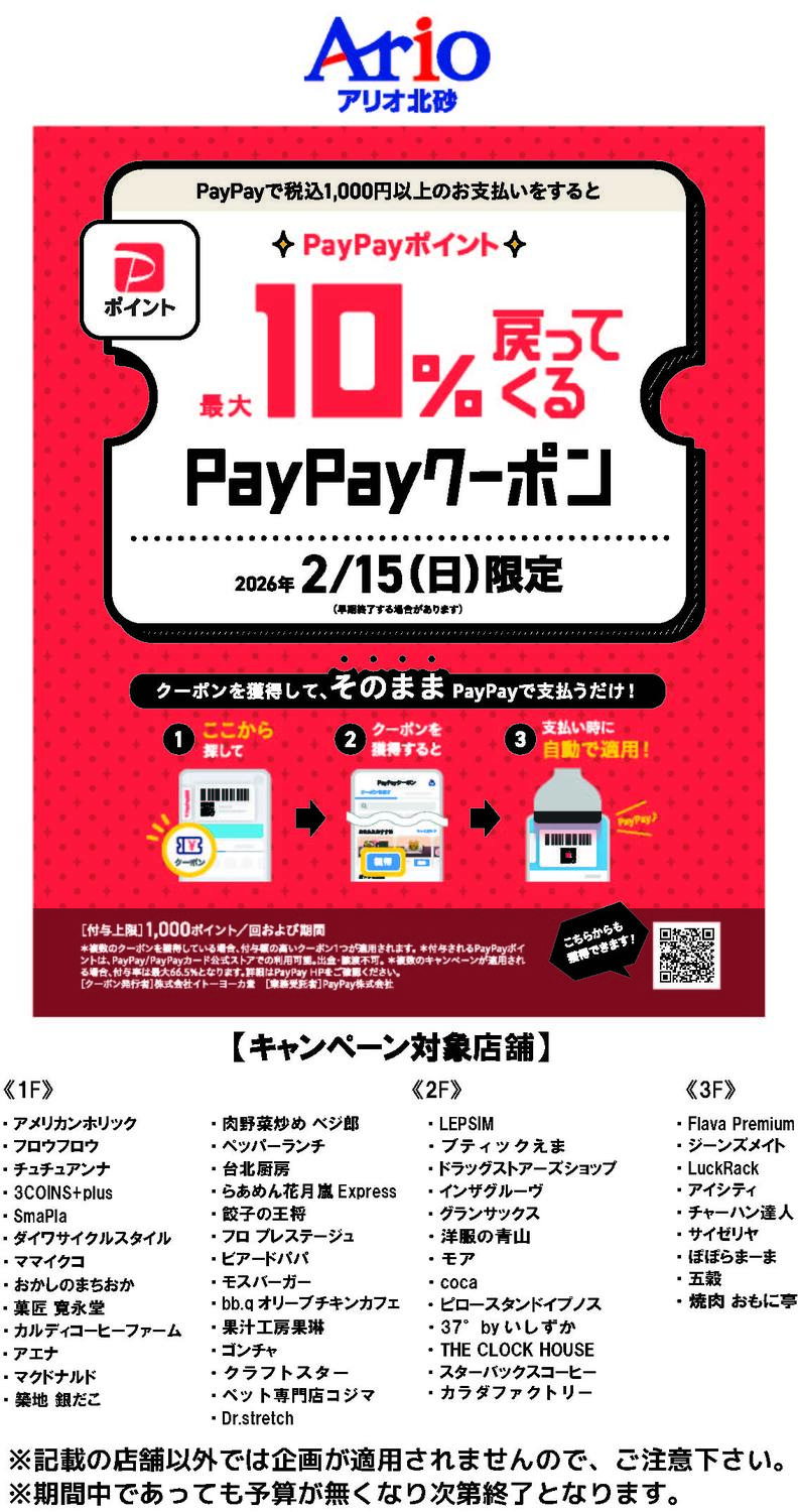 【2/15日】PayPayポイント10%戻ってくるPayPayクーポン