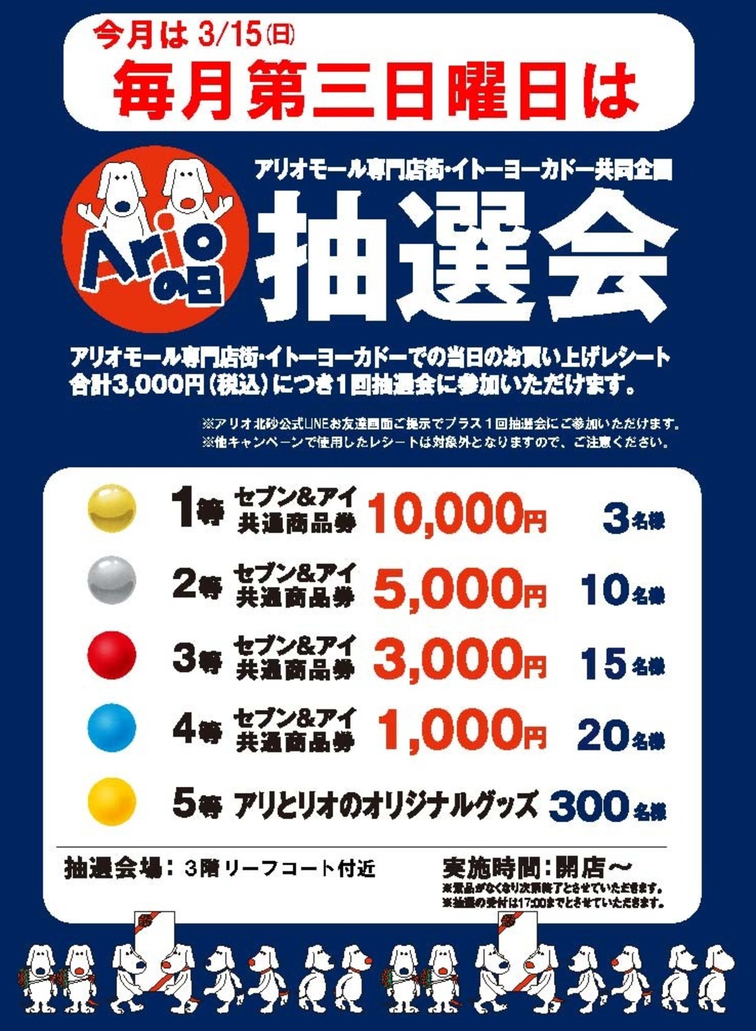 ※アリオ北砂公式LINEお友達画面ご提示でプラス1回抽選会にご参加いただけます。
