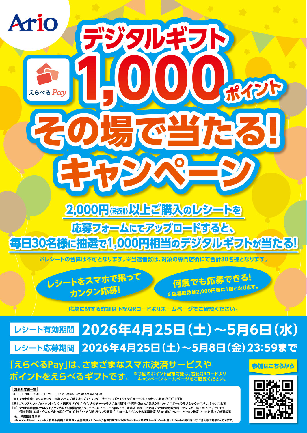デジタルギフト1,000ポイント その場で当たるキャンペーン
