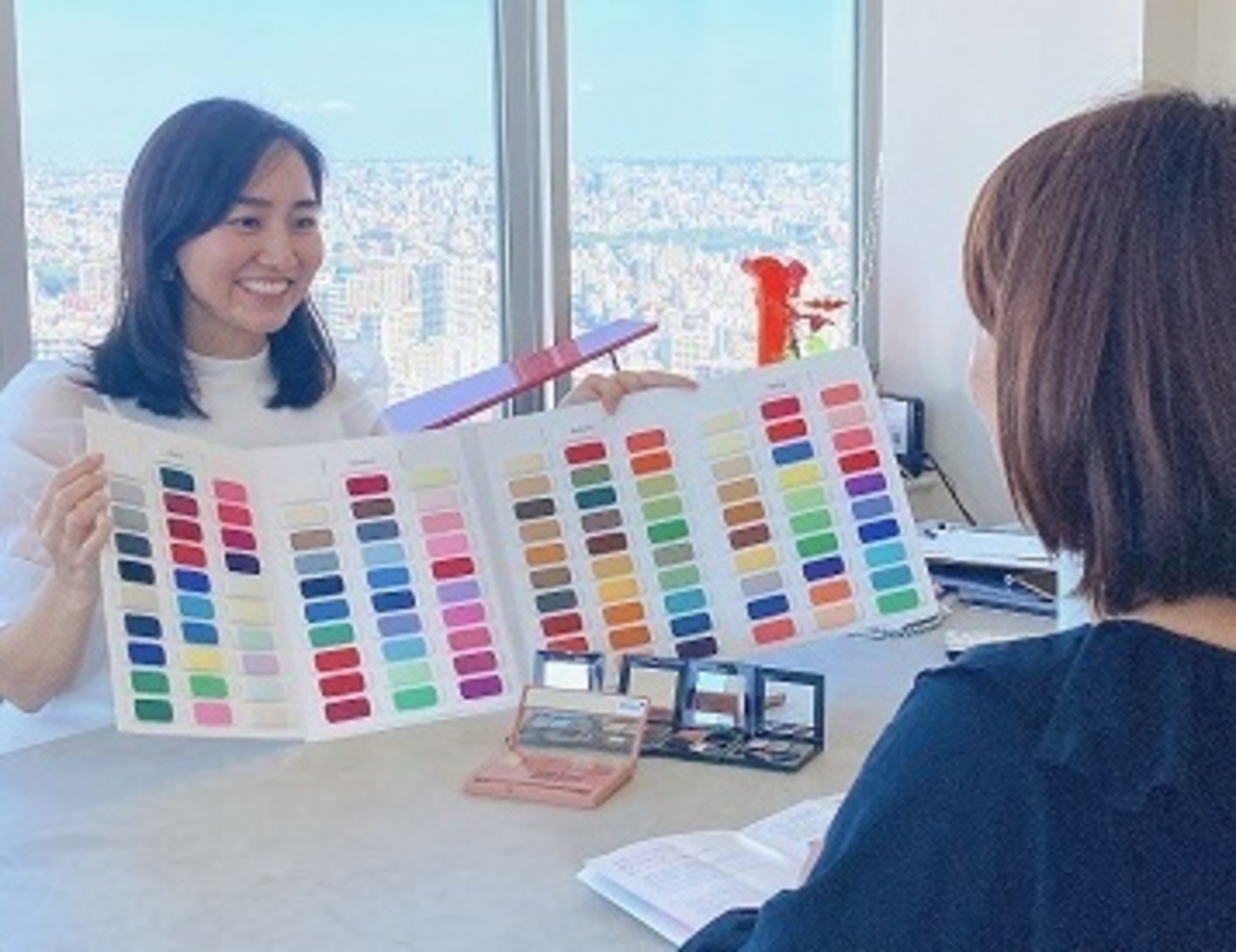 お似合いになるお洋服の色をお伝えし、お手持ちのコスメがご自身に合っているかも確認させていただきます。