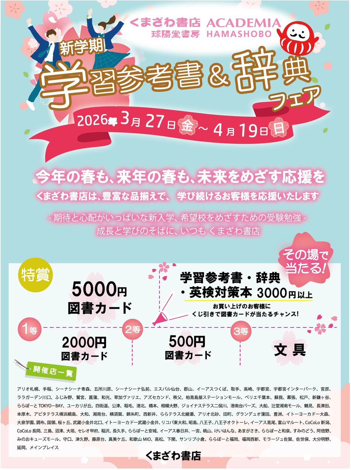くまざわ書店アリオ北砂店では《新学期学習参考書&辞典フェア 開催!》