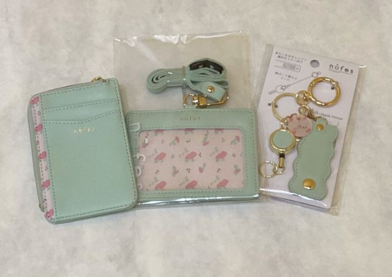 鍵や小銭を入れられるフラグメントパスケースは、カラビナ付きなのでバッグやお持ちのストラップに付けて使っていただけます。また、IDホルダーは裏面にはポケットが付いていてカードなどを入れることができます。ミラー付きキーチャームは、身だしなみチェックのできるミラーとカラビナ付きキーチャームの便利なセットになっています。